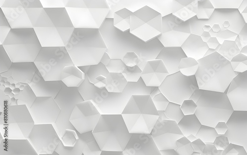 Abstract white background with hexagon patterns, simple geometric shapes for technology or science concept