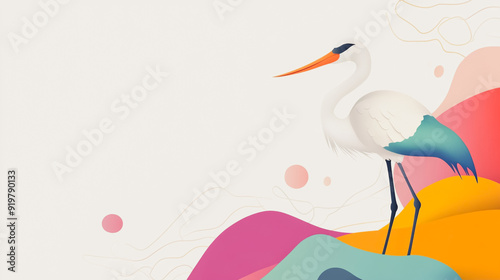 Abstract white background with pastel colorful 3D abstract background overlap layer on dark space with Stork decoration. Modern graphic design element motion style concept for banner, flyer, card,
