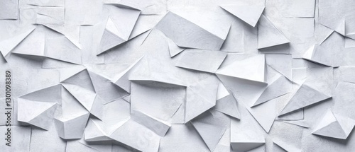 Abstract white background with texture pattern, layered geometric triangle shapes, white and grey glossy squares