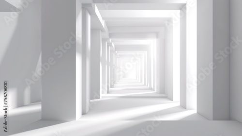 Abstract white background with white light and grey shadow : empty light interior with copy space for creative studio backdrop project.
