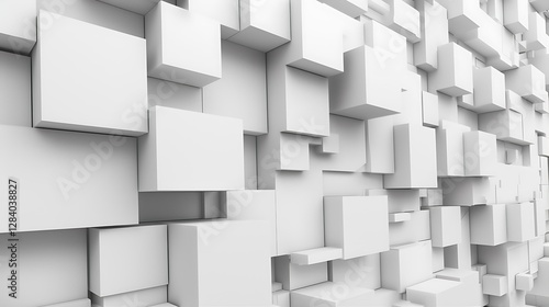 Abstract White Cubes Forming Dynamic 3D Wall Pattern Background Graphic Design Element Rendering