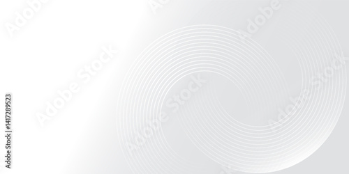 Abstract white glowing geometric lines on gray background. Modern shiny blue circle lines pattern. Futuristic technology concept. Suit for cover, poster,