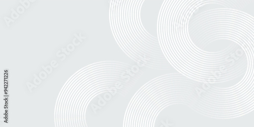 Abstract white glowing geometric lines on gray background. Modern shiny blue circle lines pattern. Futuristic technology concept. Suit for cover, poster, banner, brochure, header, website vector