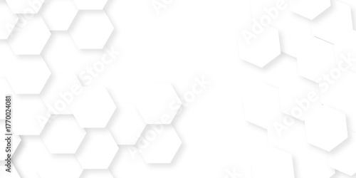 Abstract white grid presentation surface mosaic and tiles minimal tech bee website science element grid overlay white hexagon futuristic technology geometric texture background.