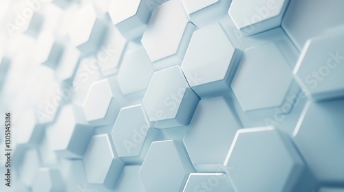 Abstract white hexagonal geometric pattern with soft light blue tones creating modern technological background with copy space