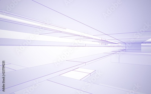 Abstract white interior highlights future. Polygon violet drawing. Architectural background. 3D illustration and rendering