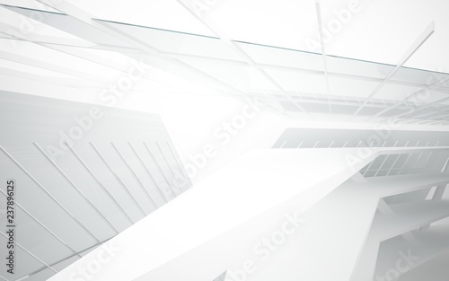 Abstract white interior of the future with glass. 3D illustration and rendering