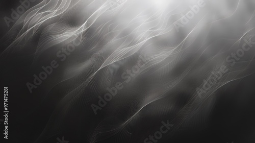 Abstract white lines flow on a black background, creating a sense of movement and depth.