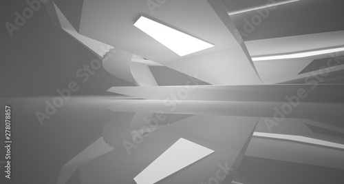 Abstract white minimalistic architectural interior with neon lighting. 3D illustration and rendering.