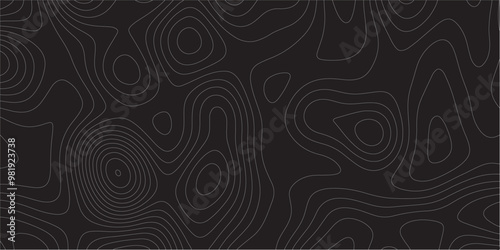 Abstract white on black background Topographic line map pattern. Contour elevation topographic and textured Background Modern design with black background with topographic wavy patted.