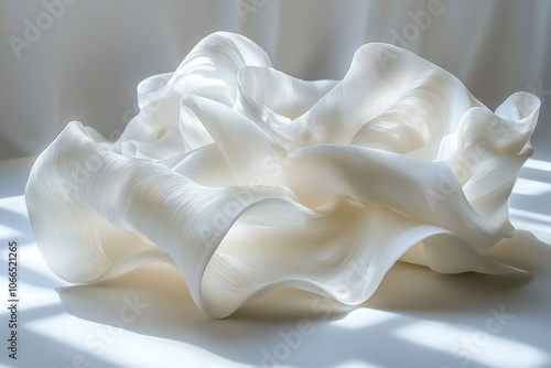 Abstract White Sculpture with Fluted Surface and Dramatic Curves