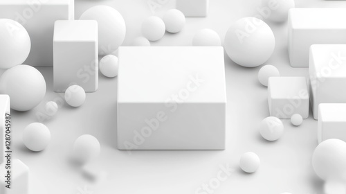 Abstract White Shapes Background with Cubes and Spheres for Design