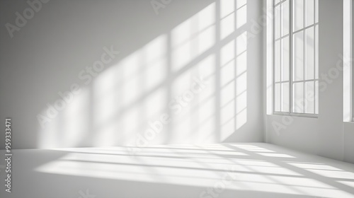 Abstract white studio background for product presentation Empty room with shadows of window Display product with blurred backdrop : Generative AI