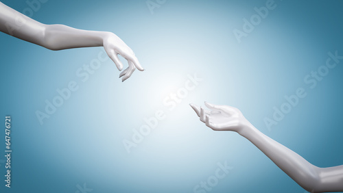 Abstract White woman hands 3d showing isolated on blue. 3d illustration