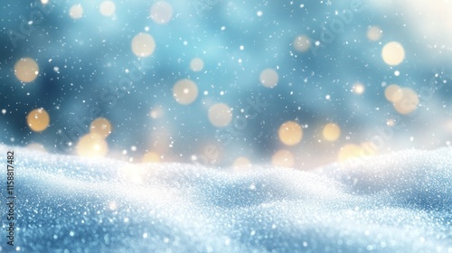 Abstract winter landscape with blurred light blue background and soft, dreamy atmosphere. The snowfield ahead is out of focus, creating depth and an ethereal, tranquil scene for winter-themed designs.