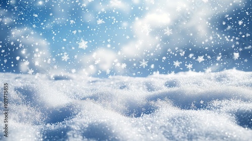 Abstract winter wonderland with snowflakes: heavy snowfall and snowflakes in the sky creating a magical christmas background