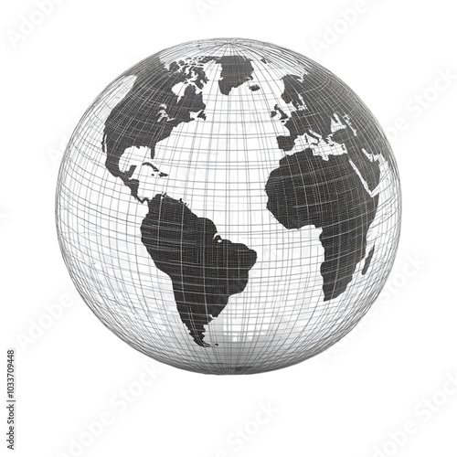 Abstract Wireframe Globe PNG for Use in Technology and Design Projects Depicting Global Connectivity and Digital Mapping