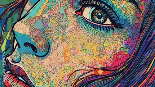 Abstract woman face in vibrant colors. Fantasy concept , Illustration painting.