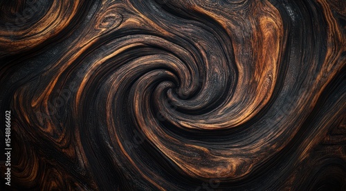 Abstract wood grain swirl. Deeply textured, swirling patterns of dark brown and amber wood