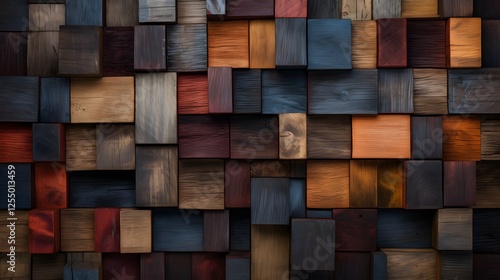 Abstract Wooden Block Wall Texture Rich Tones Diverse Grains of Reclaimed Wood