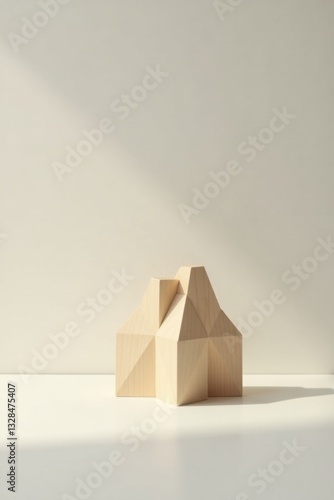 Abstract Wooden Structure in Soft Sunlight on a White Surface