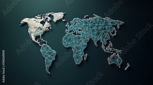 Abstract World Map Global Network Connection Polygonal Design Teal Lines