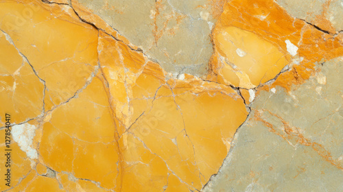 Abstract yellow cracked limestone texture with deep fissures for artistic design