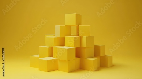Abstract Yellow Cubes Composition: A Minimalist 3D Render