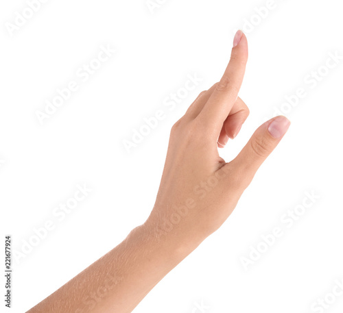 Abstract young woman's hand on white background