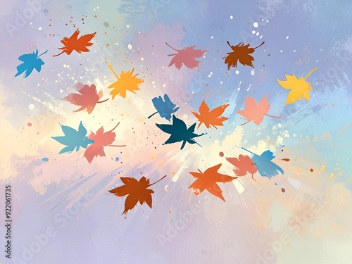 Abstraction, different colors and shapes leaves 3D forms AI generated