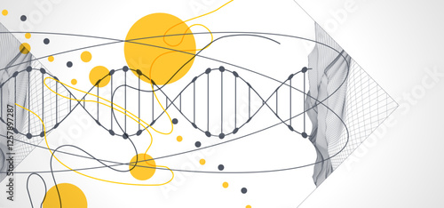 Abstraction on a scientific medical theme. Creative image of a DNA molecule with art elements.