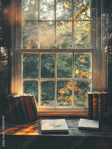 Academic Desk with Books and Notebook in a Quaint English Major Setting. AI generated illustration.