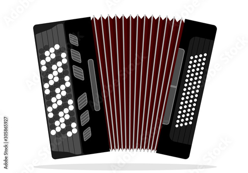 Accordion, button accordion. Accordion isolated on white. Musical instrument.