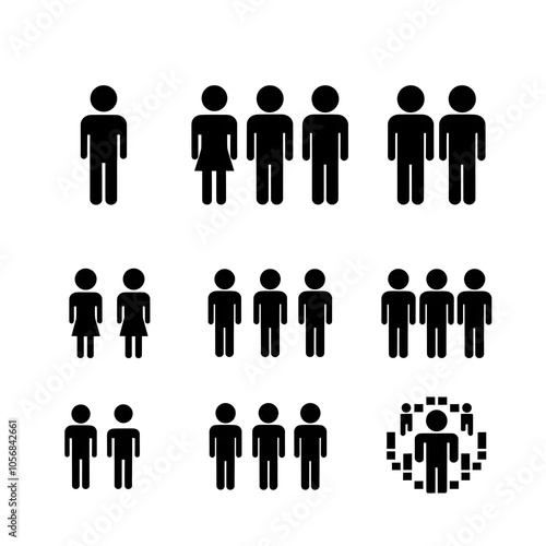 Account icon. Set of profile icons, avatars, people, change photos, settingsa