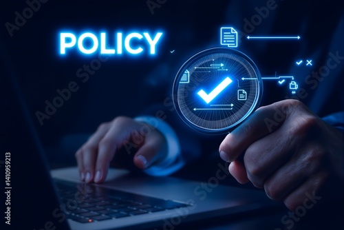 Accountant Reviewing Office Documents – Auditing Concept with Checkboxes for Policies, Terms and Company Articles Assessment