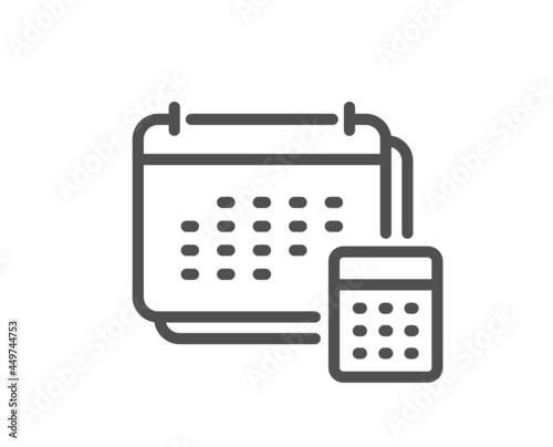 Accounting calendar line icon. Calculate annual report sign. Planner calculator symbol. Quality design element. Linear style account icon. Editable stroke. Vector