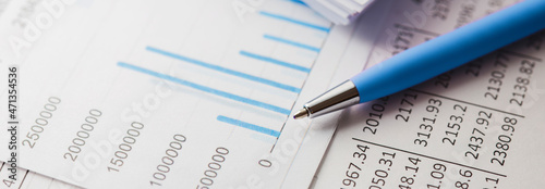Accounting document with pen and checking financial chart. Concept of banking, financial report and financial audit.