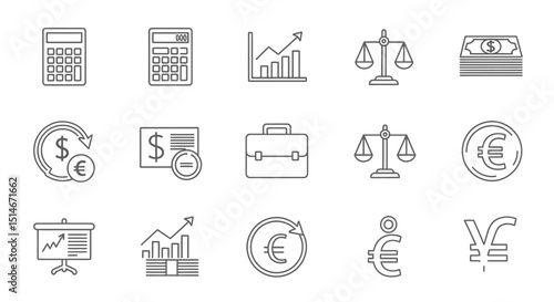 Accounting Icons Finance, Budget, Investment, and Currency Symbols