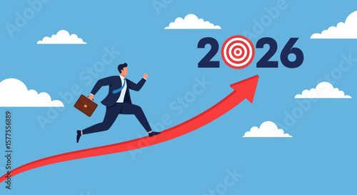 Achieving 2026 Goals A Businessman's Journey to Success on a Rising Arrow