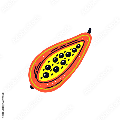 Acid fruit papaya slice. Hand drawn vector