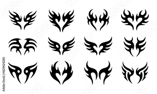 Acid Neo-tribal shapes. Abstract ethnic shapes in gothic style. Hand drawn modern elements for typography, tattoo, poster, cover. Vector illustration