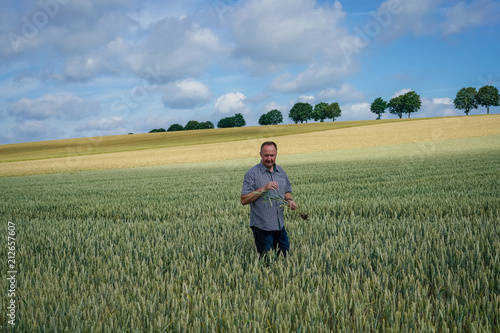 Ackerbau - Landwirt beurteilt Entwicklung von Getreidepflanzen