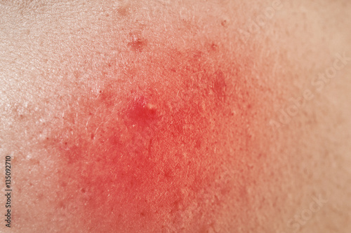 Acne treatment concept. Skin irritation, closeup