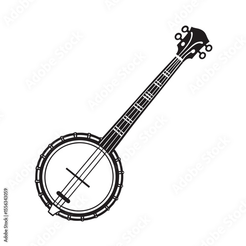 Acoustic Banjo isolated on background vector illustration. Banjo Instrument silhouette vector art illustration. Black music instrument rock, jazz silhouette. music band vector illustration icons set.