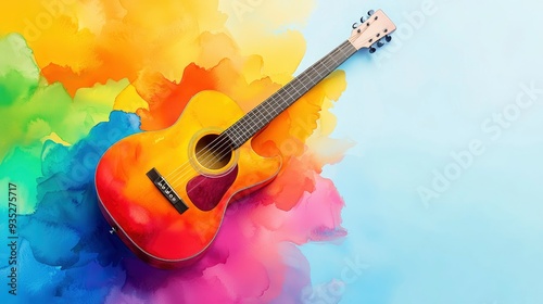 Acoustic Guitar Bathed In Watercolor, Blending Music And Art