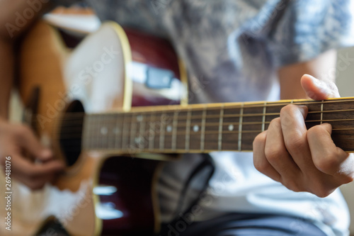 acoustic guitar close-up playing chord for jazz rock music