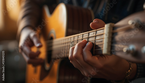 Acoustic Guitar Player Closeup Hands Chords