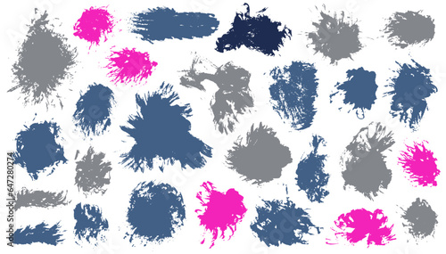 Acrylic rough daub mega set. Freehand smudge blotch stylish shapes. Spatter splash textured banner silhouette batch. Daub paint stains design.