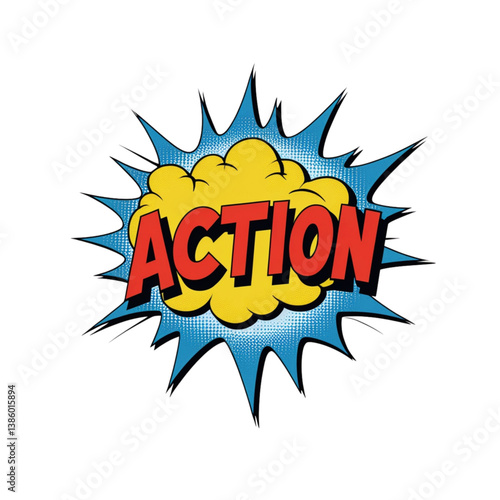Action, comic speech bubble, pop art explosion, comic book explosion