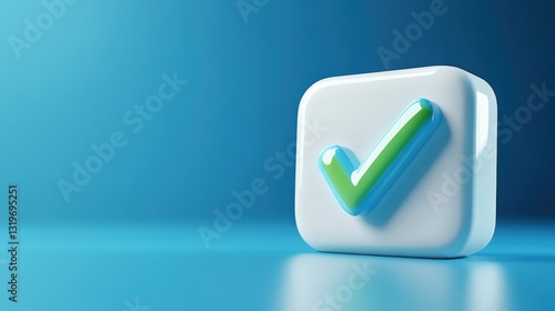Action checkmark icon digital environment graphic design minimalist style close-up view concept of success and completion